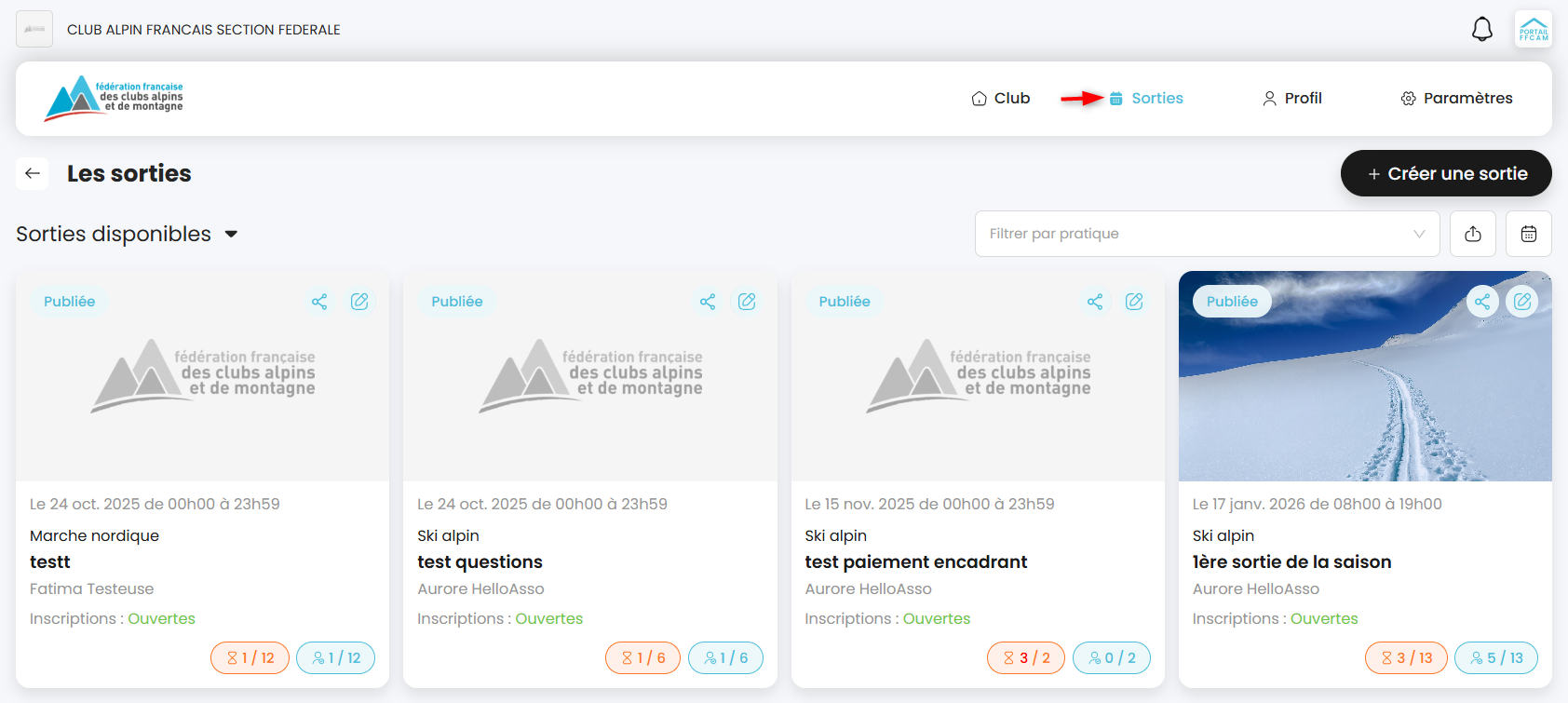 2. Cliquez sur la sortie où vous souhaitez contacter vos participants